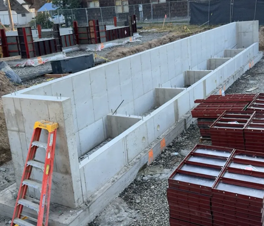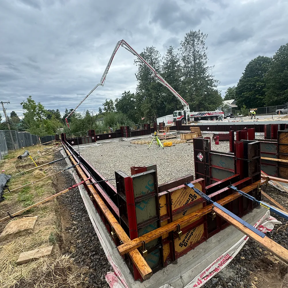 In addition to concrete flatwork and foundations, we offer architectural concrete, board-formed concrete foundations, concrete retaining walls, decorative concrete, elevated multi-story apartment decks, bunkers, tunnels, and structural elevated slabs.